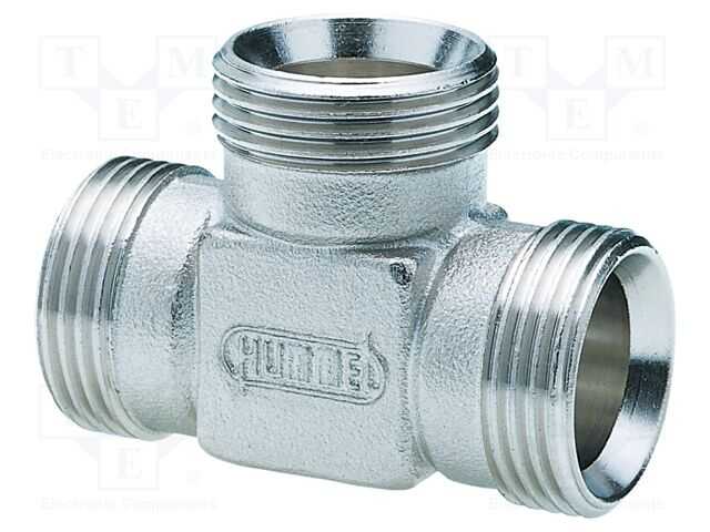 Tee; Ext.thread: G 3/4"; H: 40mm; nickel plated brass; L: 54mm