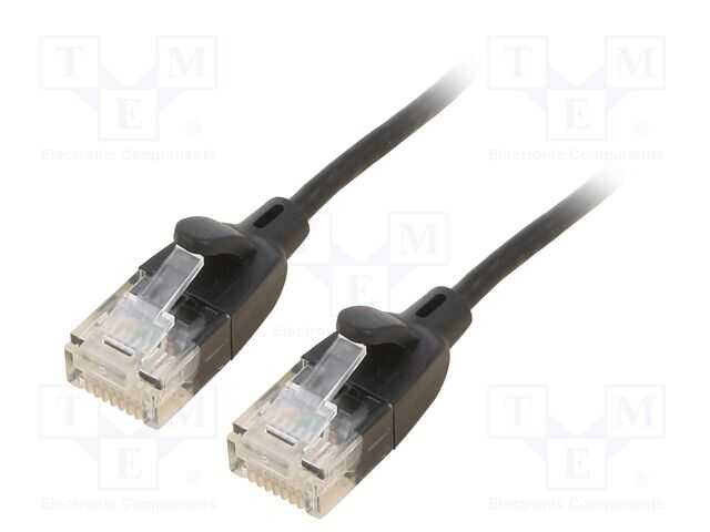 Patch cord; RJ45 fişi,her iki uçta; U/UTP; 6a; OFC; PVC; siyah; 5m