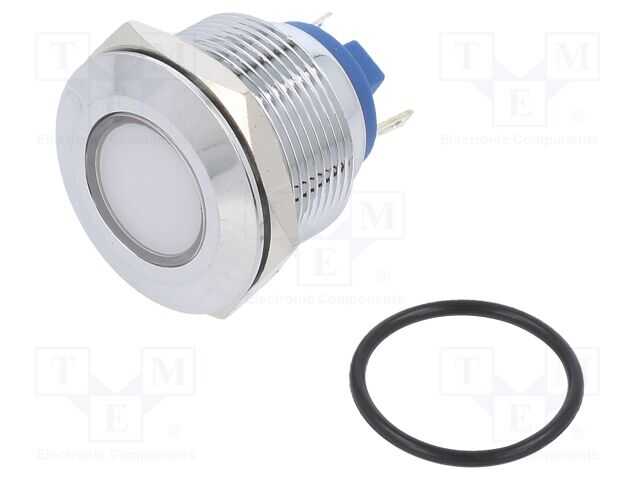Gösterge: LED; düz; beyaz; 12VDC; 12VAC; Ø22mm; pirinç