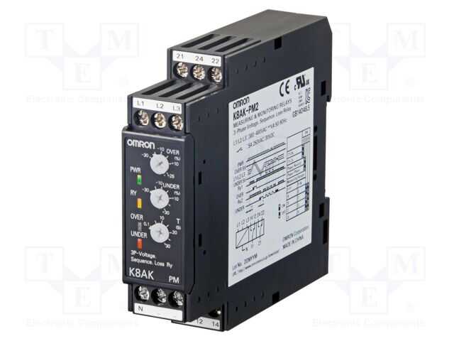 Voltaj izleme rölesi; DIN raya montaj için; K8AK-PM; SPDT; IP20