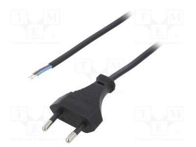 Kablo; 2x0,5mm2; CEE 7/16 (C) fiş,teller; PVC; 1,6m; siyah; 2,5A