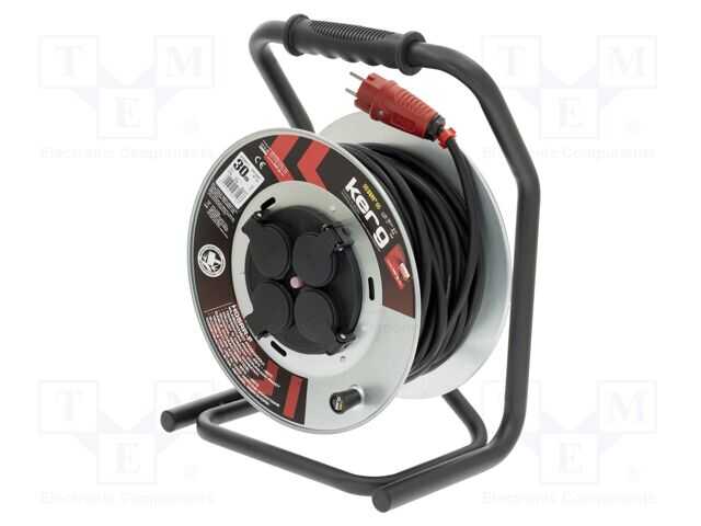 Uzatma kablosu; 3x2,5mm2; makara; Soket: 4; kauçuk; siyah; 30m; 16A