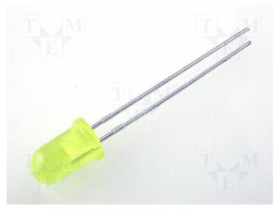 LED; 5mm; sarı; 650÷1200mcd; 30°; Ön: dışbükey; 2÷2,5VDC; Term.say: 2