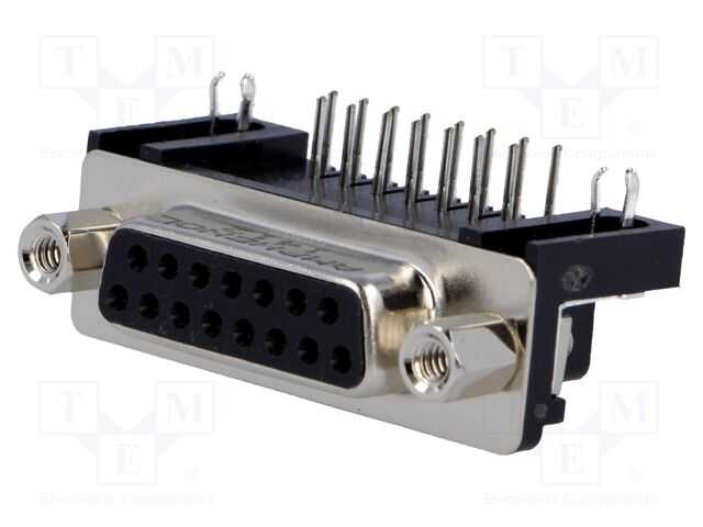 D-Sub; PIN: 15; soket; dişi; 90° açılı; THT; UNC 4-40; 5A; 250V; 15m?