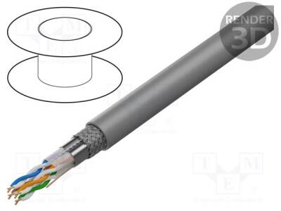 Kablo; SF/UTP; 4x2x24AWG; 7; tek telli; Cu; PVC; gri; 305m; CPR: Eca
