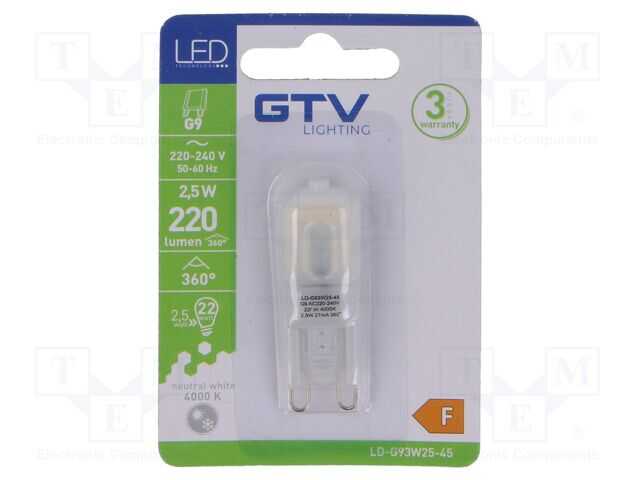 LED lamba; doğal beyaz; G9; 230VAC; 220lm; 2,5W; 360°; 4000K