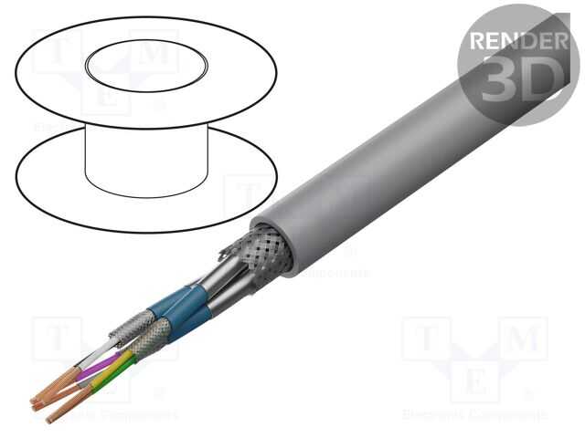 Kablo; LiYCY-CY; 3x2x0,25mm2; PVC; gri; 500V; alev geciktirici