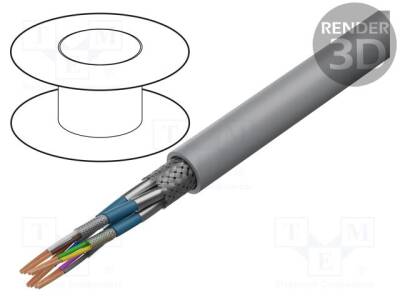 Kablo; LiYCY-CY; 4x2x0,14mm2; PVC; gri; 350V; alev geciktirici