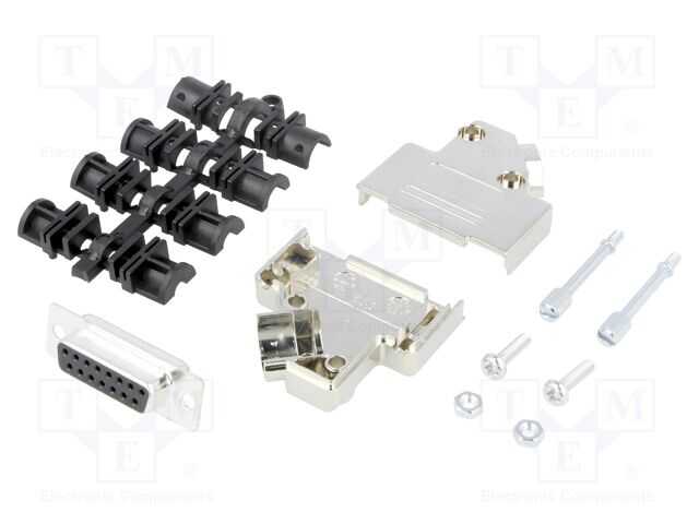 D-Sub; PIN: 15; fiş; dişi; açılı 45°; lehimleme; kablo için