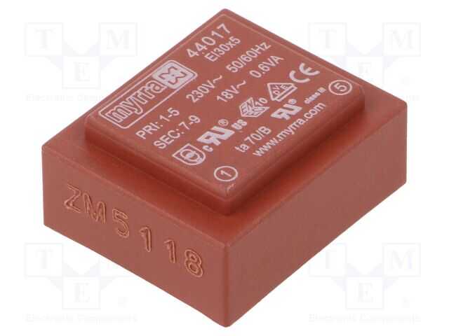 Trafo: kapalı; 0,6VA; 230VAC; 18V; 33mA; PCB; Termal sınıf: T 70B