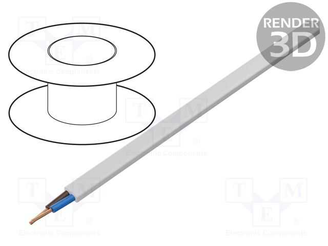 Kablo; H03VVH2-F,OMY; 2x1mm2; yassı; bükülmüş; Cu; PVC; beyaz; 300V