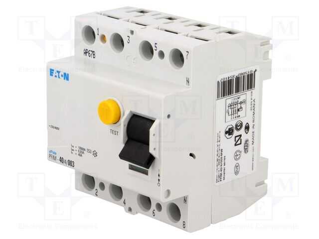 RCD kesici; Inom: 40A; Irez: 30mA; Maks.ani akım: 250A; Kutup: 4