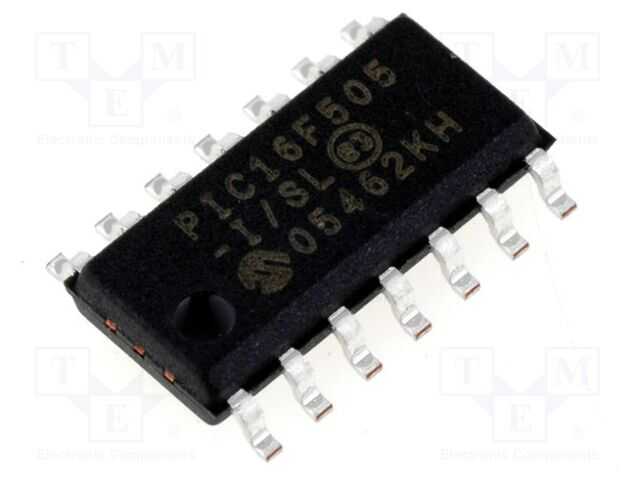 IC: PIC mikrodenetleyici; 1,5kB; 20MHz; ICSP; 2÷5,5VDC; SMD; SO14