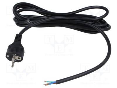 Kablo; 3x1,5mm2; CEE 7/7 (E/F) fiş,teller; PVC; 3m; siyah; 16A