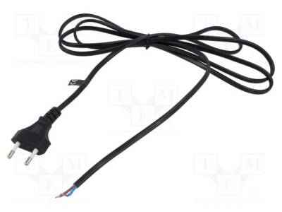 Kablo; 2x0,75mm2; CEE 7/16 (C) fiş,teller; PVC; 2m; siyah; 2,5A
