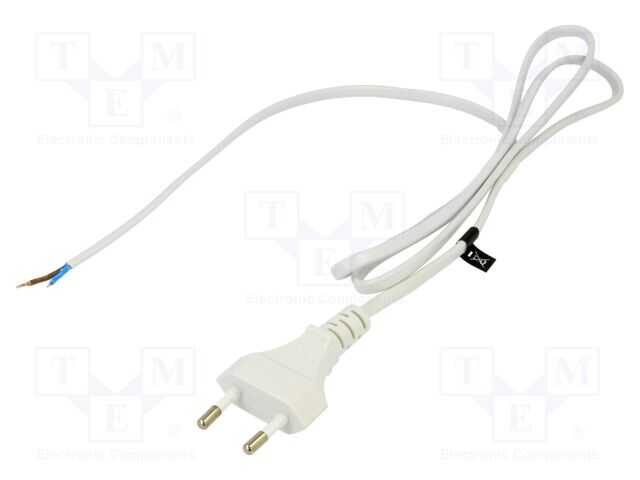 Kablo; 2x0,5mm2; CEE 7/16 (C) fiş,teller; PVC; 1,2m; beyaz; 2,5A