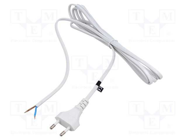 Kablo; 2x0,75mm2; CEE 7/16 (C) fiş,teller; PVC; 3m; beyaz; 2,5A
