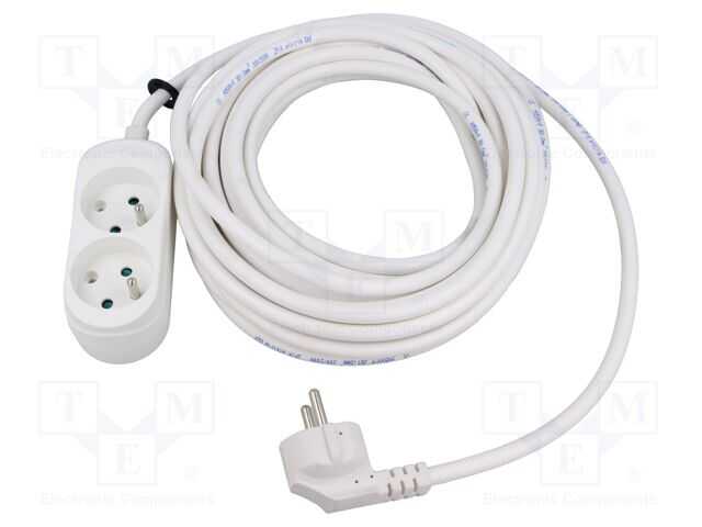 Uzatma kablosu; 3x1,5mm2; Soket: 2; PVC; beyaz; 10m; 16A
