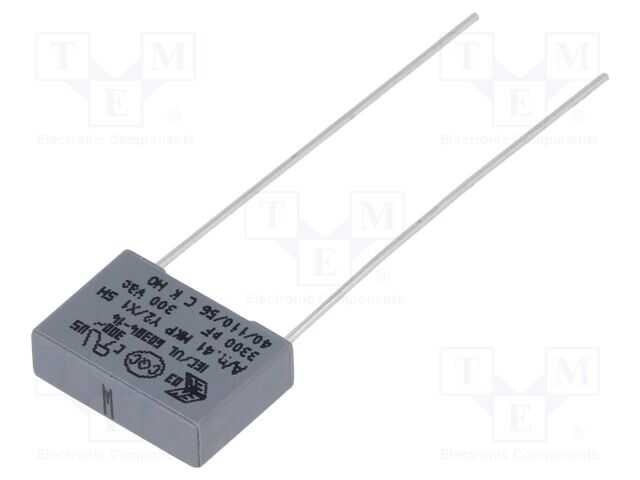 Kapasitör: polipropilen; Y2; R41; 3,3nF; 13x4x9mm; THT; ±20%; 10mm