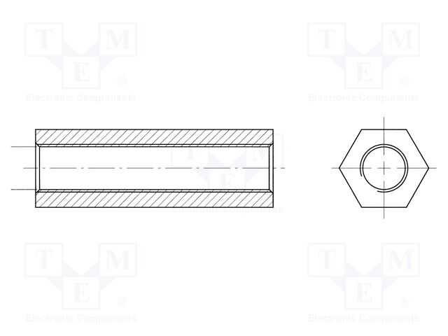 Vidalı aralayıcı kovanı; 6,35mm; İç diş: M3; altı köşe; pirinç