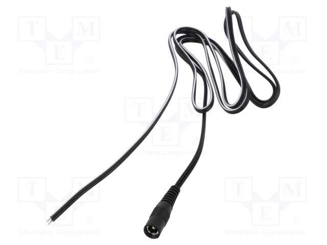 Kablo; 2x0,5mm2; teller,DC 5,5/2,5 soket; düz; siyah; 5m; -20÷70°C
