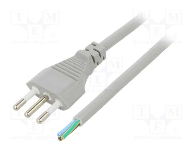 Kablo; 3x1mm2; CEI 23-50 (L) fiş,teller; PVC; 1,8m; gri; 10A; 250V