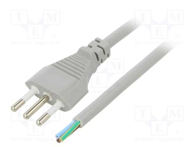 Kablo; 3x1mm2; CEI 23-50 (L) fiş,teller; PVC; 1m; gri; 10A; 250V