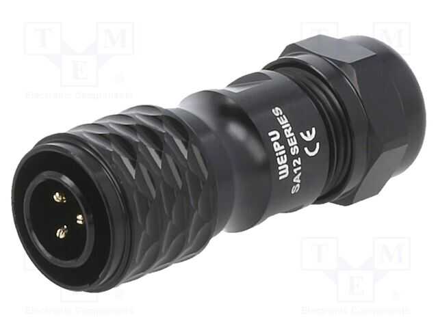 Fiş; SA12; erkek; PIN: 3; IP67; 5÷8mm; 13A; lehimleme; kablo için