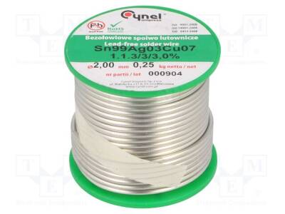 Kalay; kurşunsuz; Sn99Ag0,3Cu0,7; 2mm; 250g; makara; 216÷227°C; 3%