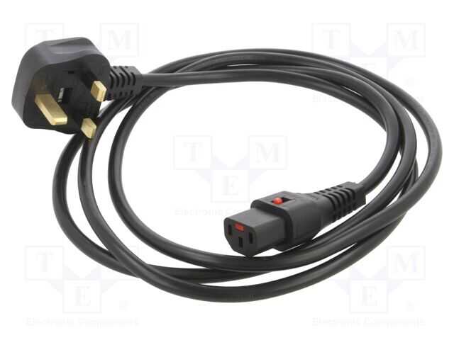 Kablo; BS 1363 (G) fiş,IEC C13 dişi; 3m; IEC LOCK kilitlemeli