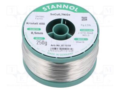 Kalay; kurşunsuz; Sn99,3Cu0,7+NiGe; 0,5mm; 250g; makara; 2,5%