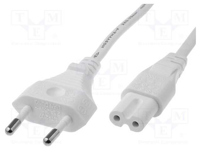 Kablo; 2x0,75mm2; CEE 7/16 (C) fiş,IEC C7 dişi; PVC; 3m; beyaz