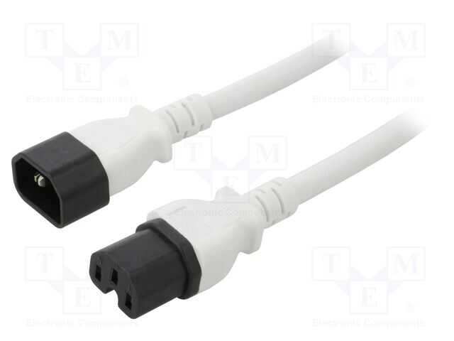 Kablo; 3x14AWG; IEC C14 erkek,IEC C15 dişi; PVC; 1m; beyaz; 15A