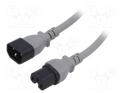Kablo; 3x14AWG; IEC C14 erkek,IEC C15 dişi; PVC; 5m; gri; 15A; 250V