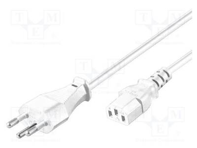 Kablo; IEC C13 dişi,SEV-1011 (J) fiş; PVC; 2m; beyaz; 10A; 250V