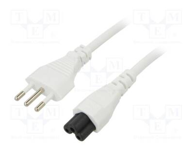 Kablo; 3x0,75mm2; CEI 23-50 (L) fiş,IEC C5 dişi; PVC; 3m; beyaz