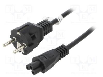 Kablo; CEE 7/7 (E/F) fiş,IEC C5 dişi; PVC; 1m; siyah; 2,5A; 250V