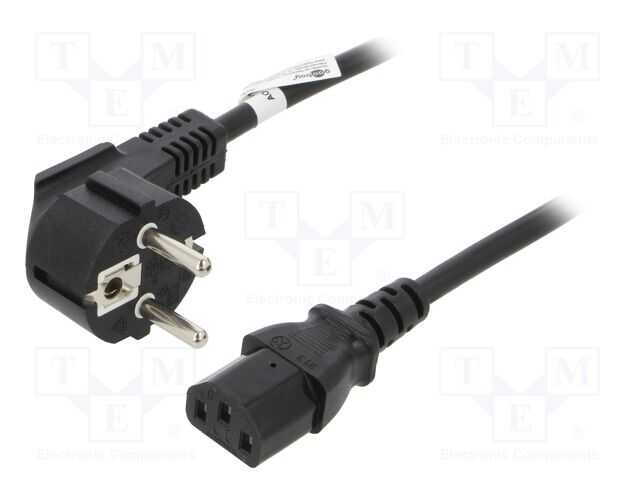 Kablo; CEE 7/7 (E/F) fiş köşeli,IEC C13 dişi; PVC; 2m; siyah; 10A
