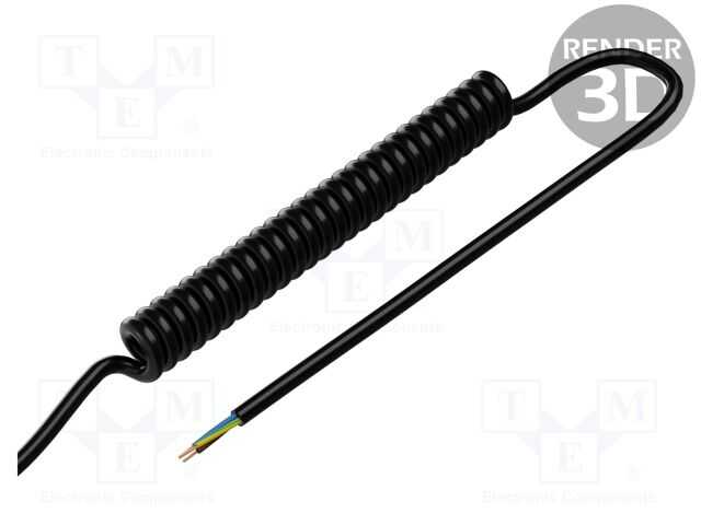 Kablo: sargılı; 3G1,5mm2; blendajsız; PUR; siyah; 300V,500V; 1m