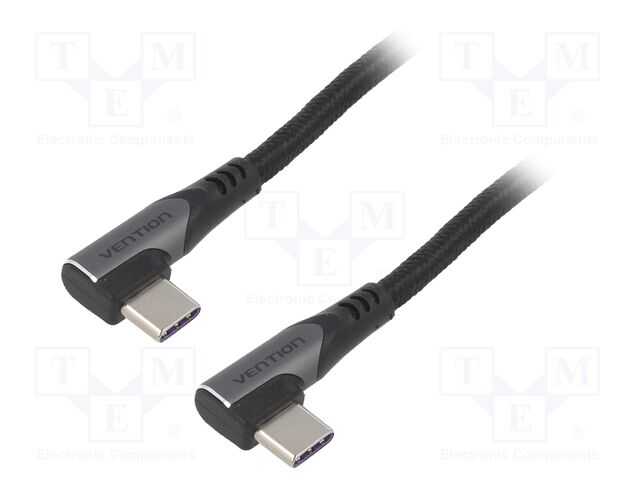 Kablo; USB 2.0; USB C açılı fiş,her iki uçta; 1m; siyah; 480Mbps