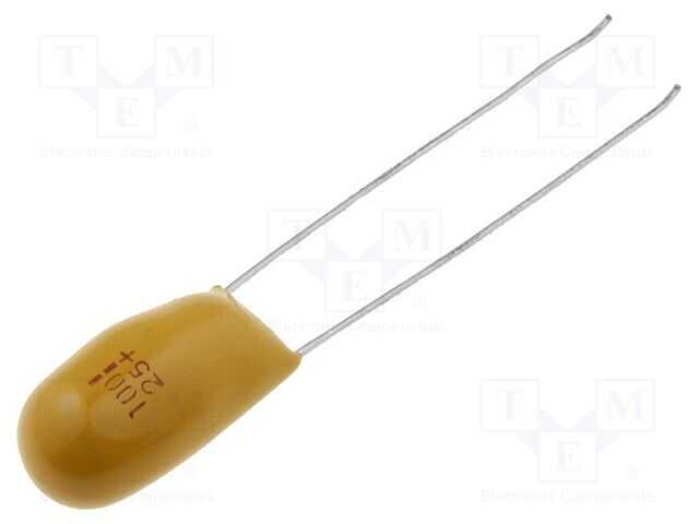 Kapasitör: tantal; 100uF; 25VDC; THT; 5mm