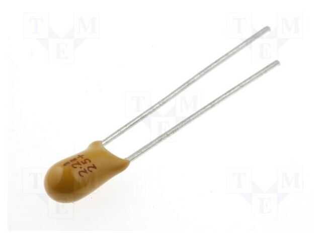 Kapasitör: tantal; 2,2uF; 25VDC; THT; ±20%; -55÷85°C; 2,54mm