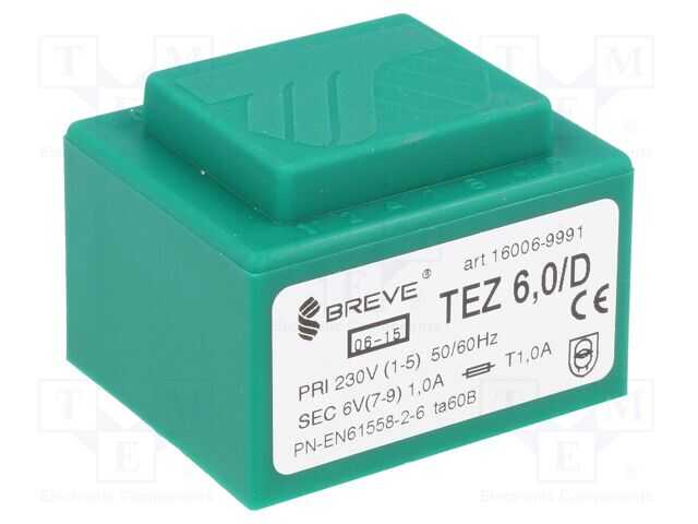 Trafo: kapalı; 6VA; 230VAC; 6V; 1A; PCB; IP00; Termal sınıf: Ta60B