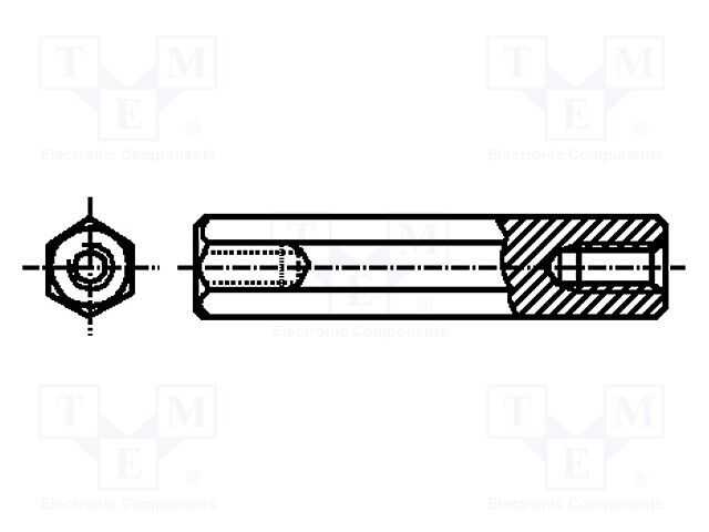 Vidalı aralayıcı kovanı; 28mm; İç diş: M2,5; altı köşe; pirinç