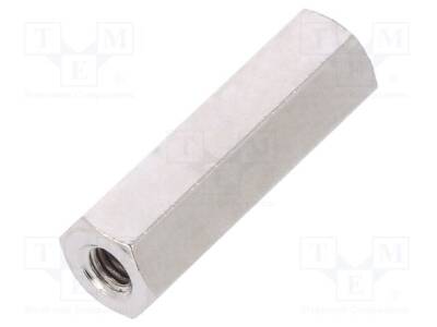 Vidalı aralayıcı kovanı; 20mm; İç diş: M3; altı köşe; pirinç