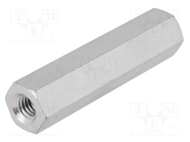 Vidalı aralayıcı kovanı; 95mm; İç diş: M4; altı köşe; çelik; çinko