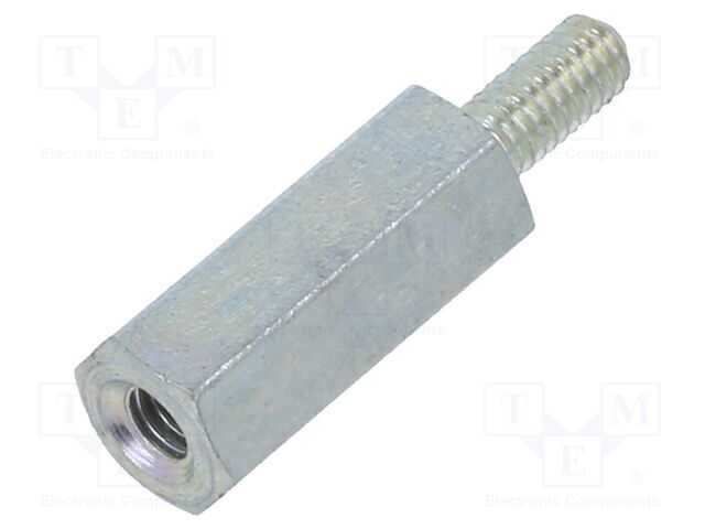 Vidalı aralayıcı kovanı; 12mm; İç diş: M2,5; Dış diş: M2,5; çelik