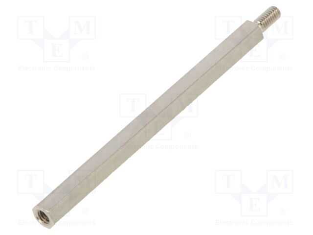 Vidalı aralayıcı kovanı; 50mm; İç diş: M2,5; Dış diş: M2,5; pirinç