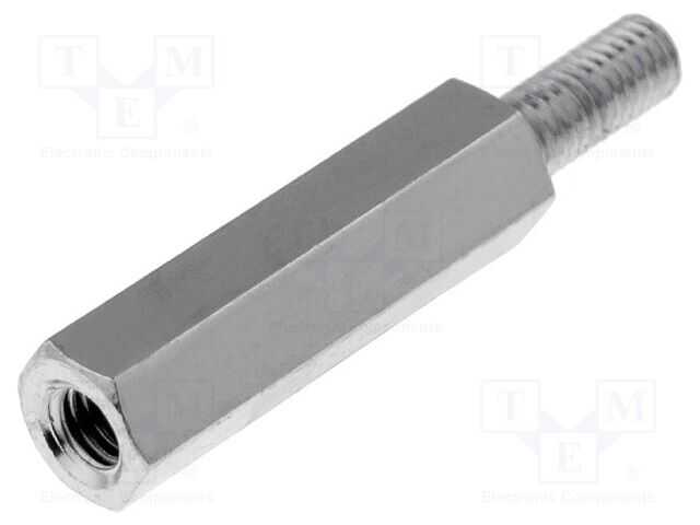 Vidalı aralayıcı kovanı; 18mm; İç diş: M3; Dış diş: M3; altı köşe