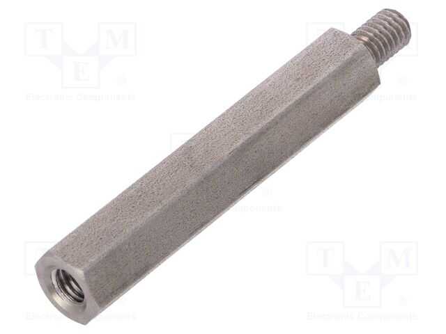 Vidalı aralayıcı kovanı; 55mm; İç diş: M6; Dış diş: M6; altı köşe